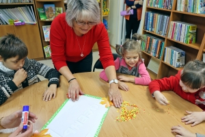 В начале встречи «Здравствуй, лес! Мы попали в край чудес!» специалист библиотеки предложила малышам волшебный ритуал: из яркой цветной бумаги изобразить слово «Осень» и под заливистую песенку похлопать в ладошки, словно приветствуя пусть и осенний, но еще такой теплый дождик.