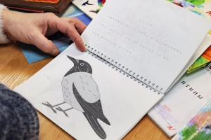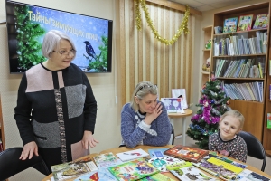 Во время книжного обзора «Пернатые соседи» любознательные посетители с интересом рассматривали яркие издания и творческие работы учеников Мурманской коррекционной школы-интерната № 3. Ребята с удивлением узнали, что кроме маленьких синичек, снегирей, свиристелей в Заполярье зимуют огромные страусы.