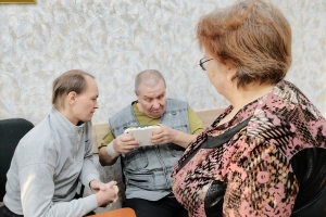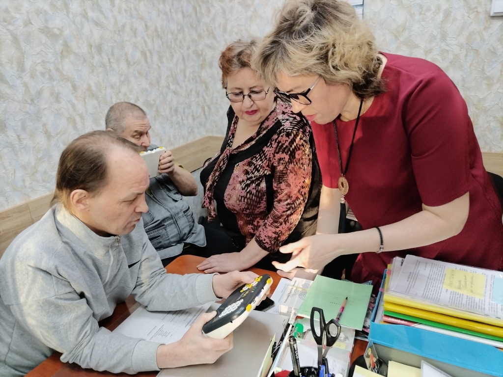 В рамках областного тифлотурне волонтер Андрей Фофанов, имеющий нарушения зрения, провел для собравшихся консультации. Он рассказал о работе новых моделей тифлофлешплееров для прослушивания «говорящих» книг и помог настроить специальное программное обеспечение на ноутбуках.