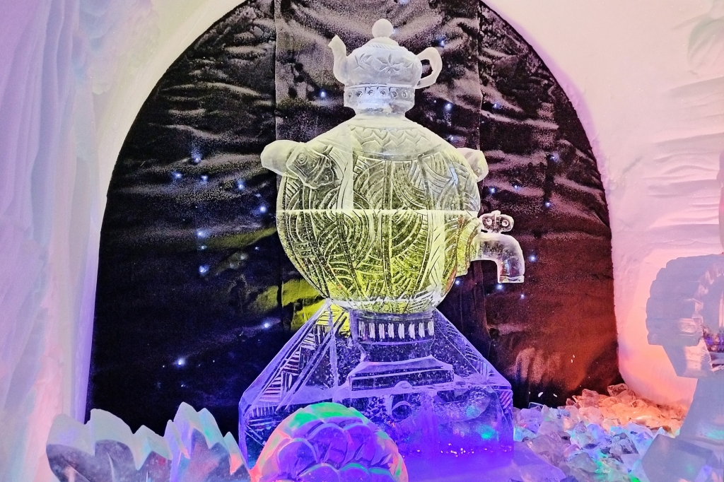 В ледяных залах ожили персонажи русского фольклора: гости дотронулись до «молодильных» яблок и даже отыскали яйцо, в котором, по легенде, спрятана смерть Кощея Бессмертного. Экскурсоводом с улыбкой отметила, что объяснить иностранцам, кто такой Кощей Бессмертный — задача не из легких, но для наших участников этот образ был понятен и близок с детства.