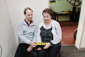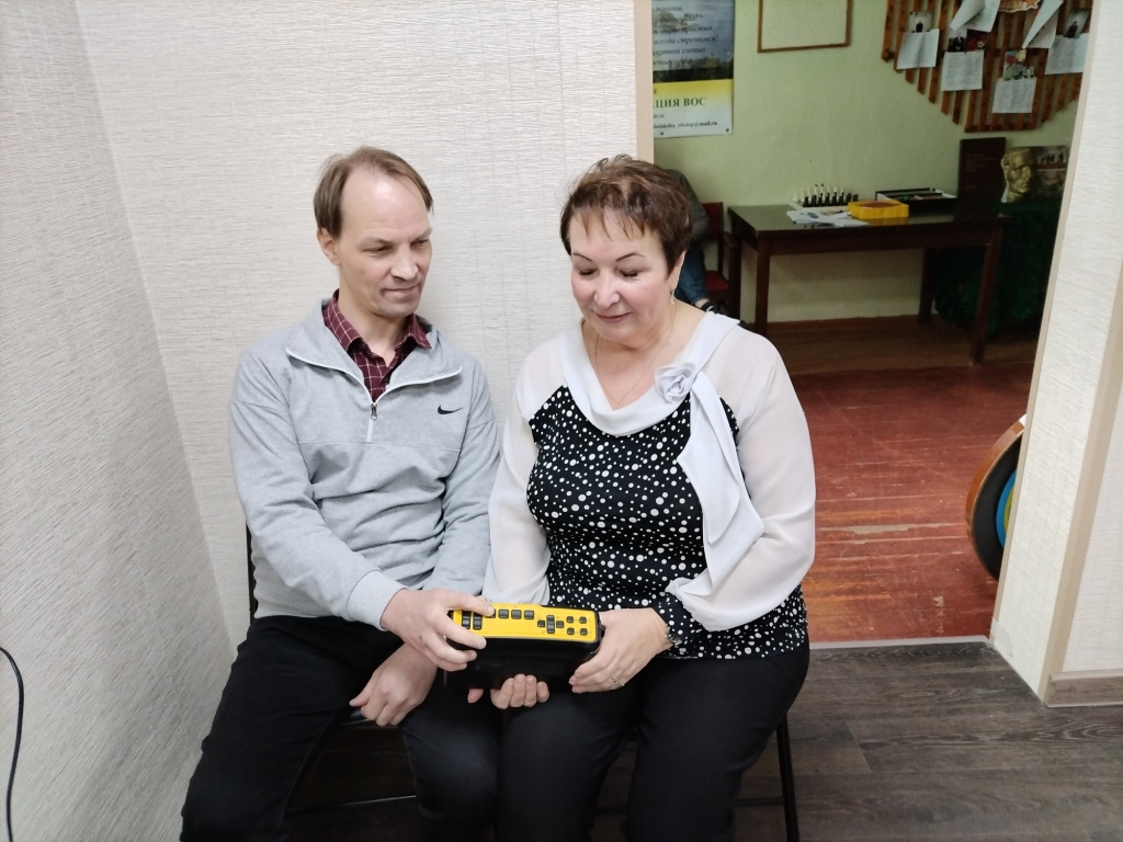 В рамках областного тифлотурне волонтер с нарушениями зрения Андрей Фофанов, провел консультацию для незрячего читателя по использованию тифлофлешплеера для прослушивания «говорящих» книг.