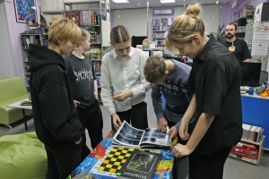 13 ноября 2025 года участники профориентационного инклюзивного проекта «В поисках призвания» областной специальной библиотеки для слепых и слабовидящих побывали на интерактивной экскурсии в Библиотеке комиксов города-героя Мурманска. Школьники узнали о работе учреждения, где каждый специалист разбирается в комиксах, цифровых технологиях, умеет работать с 3D-принтером и создавать мультфильмы.