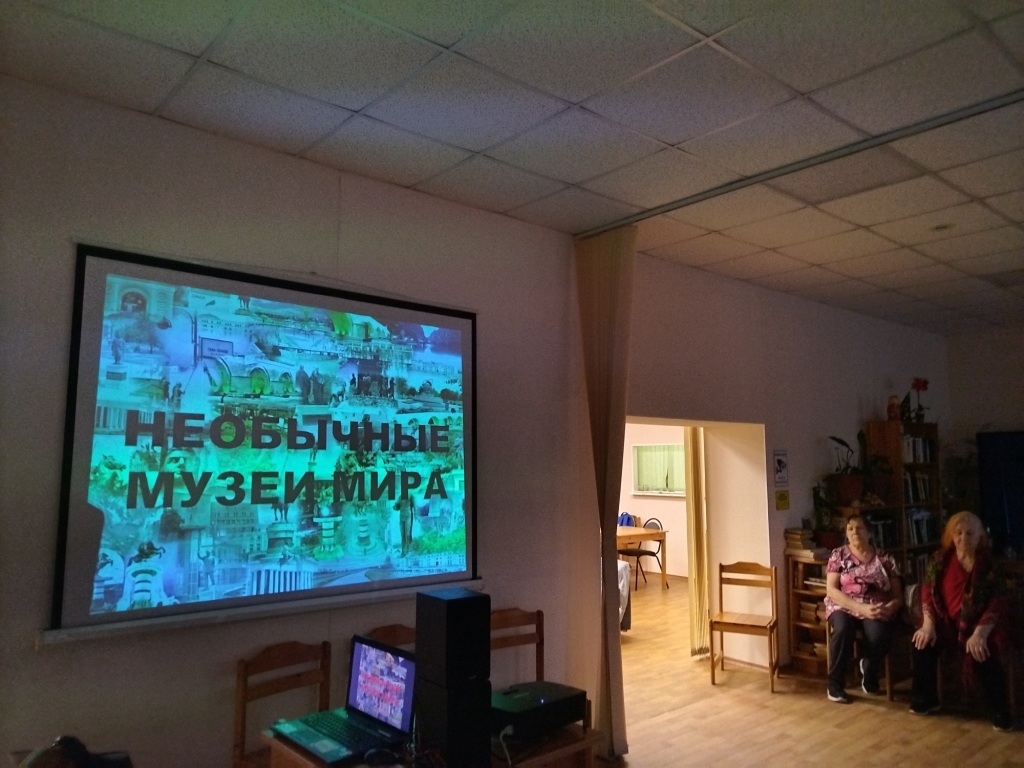 В рамках региональной акции «Северное долголетие» сотрудник специальной областной библиотеки рассказала посетителям Социально-реабилитационного отделения граждан пожилого возраста и инвалидов о самых необычных музеях мира.