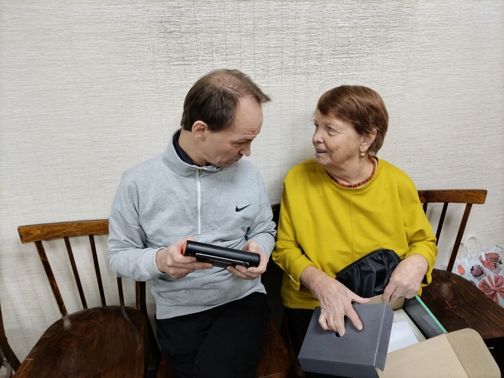 В рамках областного тифлотурне волонтер с нарушениями зрения Андрей Фофанов провел консультации по использованию различных моделей тифлофлешплееров для прослушивания «говорящих» книг и помог участникам встречи разобраться в функциях программы озвучивания смартфонов.