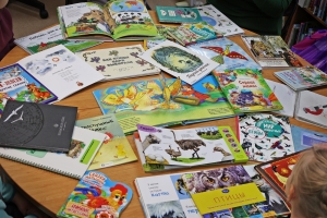Во время книжного обзора «Пернатые соседи» любознательные посетители с интересом рассматривали яркие издания и творческие работы учеников Мурманской коррекционной школы-интерната № 3. Ребята с удивлением узнали, что кроме маленьких синичек, снегирей, свиристелей в Заполярье зимуют огромные страусы.
