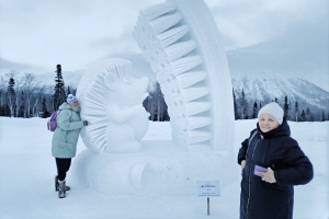 Вместе с экскурсоводом Светланой Никитиной участники путешествия прогулялись по комплексу и прикоснулись к ледяным и снежным композициям. Здесь и знакомые с детства сказки, и страницы истории, и важные события страны, и архитектурные образы.