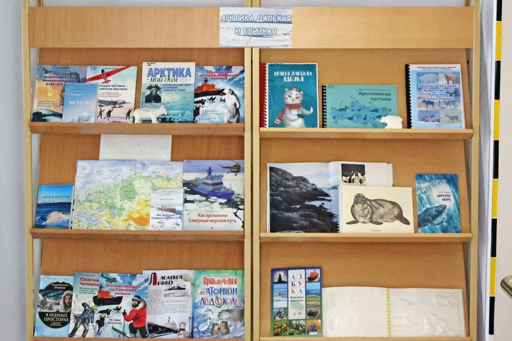 На выставке посетители найдут «говорящие» издания познавательных книг Михаила Савинова «Как проложили Северный морской путь» и Ивана Папанина «На полюсе». Они изданы в рамках инклюзивного проекта библиотеки «Говорящая книга» вместе с молодежной организацией «Гравицапа». В озвучивании участвовали школьники, педагоги и волонтеры.
